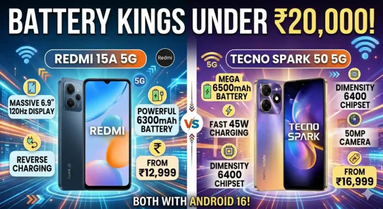 The budget smartphone market in India has just witnessed a massive shake-up. With the launch of the Redmi 15A 5G and the Tecno Spark 50 5G, the competition in the sub-₹20,000 segment has reached new heights. Both brands are targeting users who crave two things: unbeatable battery life and the latest Android 16 experience.