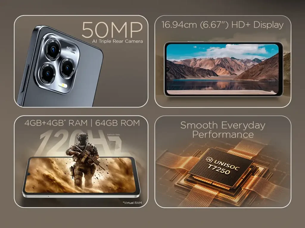 इस स्मार्टफोन में 6.67 इंच का HD+ LCD डिस्प्ले दिया गया है, जो 120Hz रिफ्रेश रेट के साथ आता है। यह फीचर यूजर्स को स्मूथ स्क्रॉलिंग और बेहतर विजुअल एक्सपीरियंस प्रदान करता है।