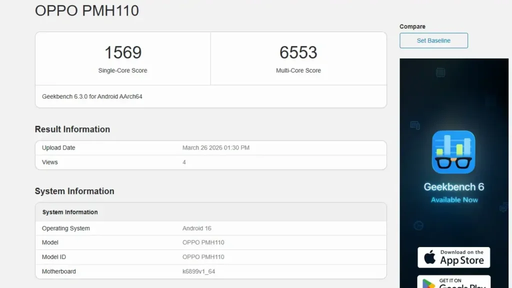 On the other hand, the Oppo K15 Pro+, carrying model number PMG110, is likely to feature the MediaTek Dimensity 9500s chipset. It achieved 2,688 points in single-core and 8,350 points in multi-core tests, suggesting a significant performance boost over the standard variant.